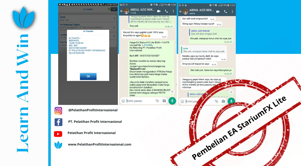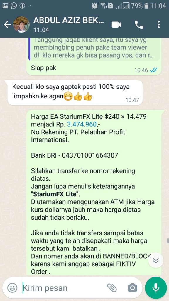 Terima Kasih Bapak Syarif Jayaprana atas pembelian EA StariumFX Lite sebesar $240 USD x 14.479 menjadi Rp 3.474.960,- semoga profit terus menggunakan Robot Trading yang Bapak miliki saat ini.