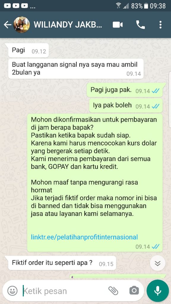 Terima Kasih Bapak Wiliandy Dari Jakarta Barat Atas Langganan Signal Forex Selama 2 Bulan sebesar Rp. 448,200.00 berlaku sampai dengan 29 November 2020. Semoga profitnya berlipat-lipat dan berlanjut langganan Signalnya yang lebih panjang lagi. Aamiin