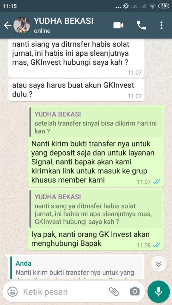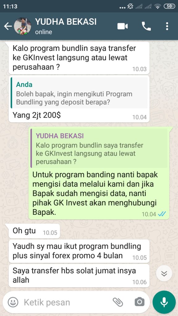 Terima Kasih Bapak Yudha Dari Bekasi Atas Deposit Program Bundling Sebesar $200 atau sebesar Rp.2.000.000 dan Free Signal 1 bulan. Semoga profit terus berlanjut dan berlipat-lipat ya. Supaya bisa mengikuti langganan Signalnya lebih panjang lagi. AMIN.