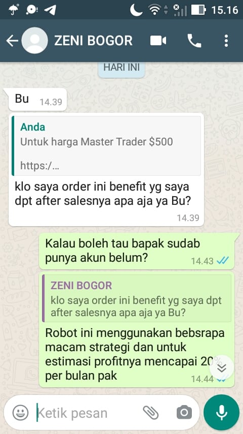 Terima kasih Bapak Zeni dari Jakarta atas pemesanan EA Master Trader sebesar $250 menjadi Rp. 3.515.000,-. Semoga Bapak profit terus menggunakan Robot Pivot Master kami, AMIN.