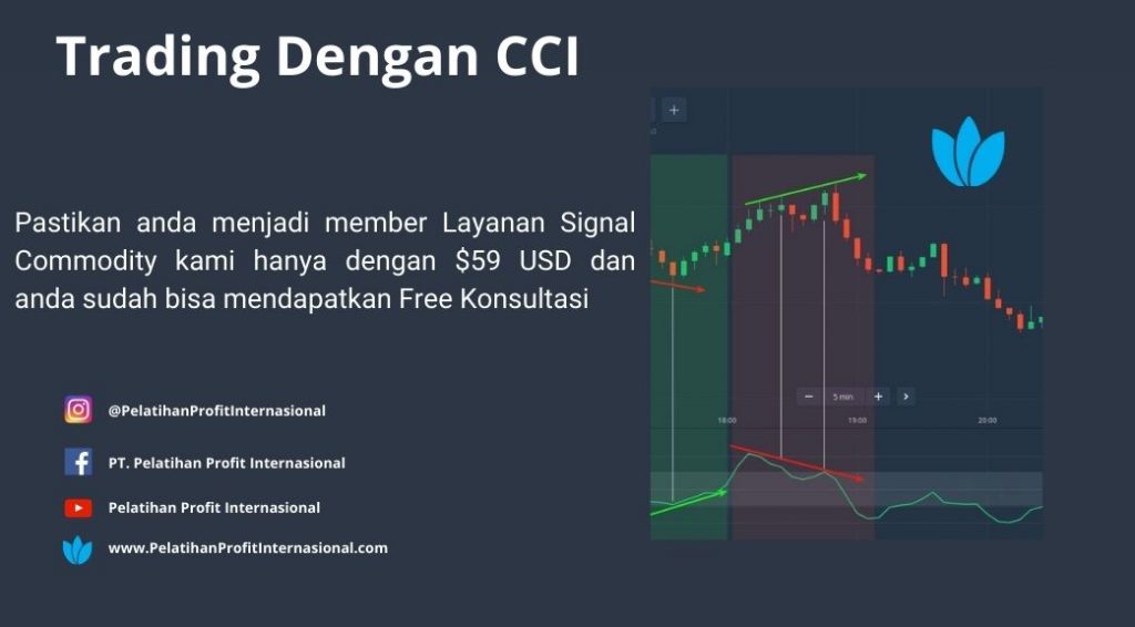 Commodity Channel Index (CCI) adalah satu indikator bawaaan MetaTrader. CCI juga dapat diklasifikasikan sebagai salah satu kelompok jenis Oscillator yang bersama dengan RSI, MACD, dll. Pembacaan CCI sebenarnya sangat simpel CCI juga dapat digunakan untuk melihat tingkat kejenuhan pasar. Commodity Channel Index (CCI) merupakan indikator analisis teknikal yang tergolong dari oscillator dan dapat digunakan untuk mengidentifikasi tren siklikal di sebuah instrumen. Pada awal indikator ini juga untuk menganalisis arah harga komoditas. Commodity Channel Index (CCI) dibuat oleh Donald Lambert pada tahun 1980 sebagai alat bantu dalam trading komoditi. Namun juga kenyataannya, indikator ini dapat digunakan untuk trading di semua jenis pasar termasuk forex. Lambert juga dapat membuat CCI untuk mengukur perbedaan antara harga tengah, dan pergerakan harga, dengan rata-rata dari harga tengah dalam periode dan waktu yang tertentu. Cara menggunakan Indikator CCI dalam Trend Following trading yaitu sebuah perjalanan pasar, harga juga dapat bergerak ke satu sisi yang kuat dan terus-menerus. Sehingga dengan keadaan ini biasanya dapat digunakan oleh para trader Trend Following untuk dapat meraih keuntungan. Namun pergerakan harga secara trend di satu arah juga biasanya diiringi dengan koreksi-koreksi kecil, yang biasa juga disebut dengan retracement. Pasca retracement dapat terjadi, harga juga akan kembali untuk melanjutkan perjalanannya. Dengan cara menggunakan indikator CCI, retracement ini juga dapat dideteksi. Bisa juga dilihat pada sebuah pergerakan besar ke atas (Uptrend) yang dapat terjadi di time frame H4 di EUR/USD.