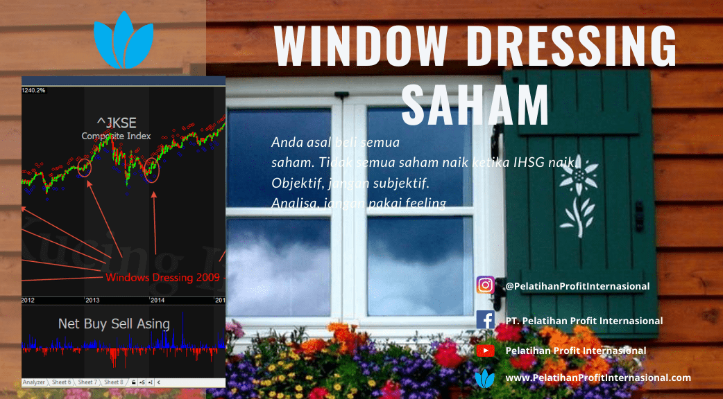 Well, itu kira – kira yang bisa kami sampaikan seputar window dressing. Ingat, perhatikan saham – per saham ya dalam melakukan pembelian. Jangan karena pede IHSG naik, Anda asal beli semua saham. Tidak semua saham naik ketika IHSG naik. Objektif, jangan subjektif. Analisa, jangan pakai feeling.